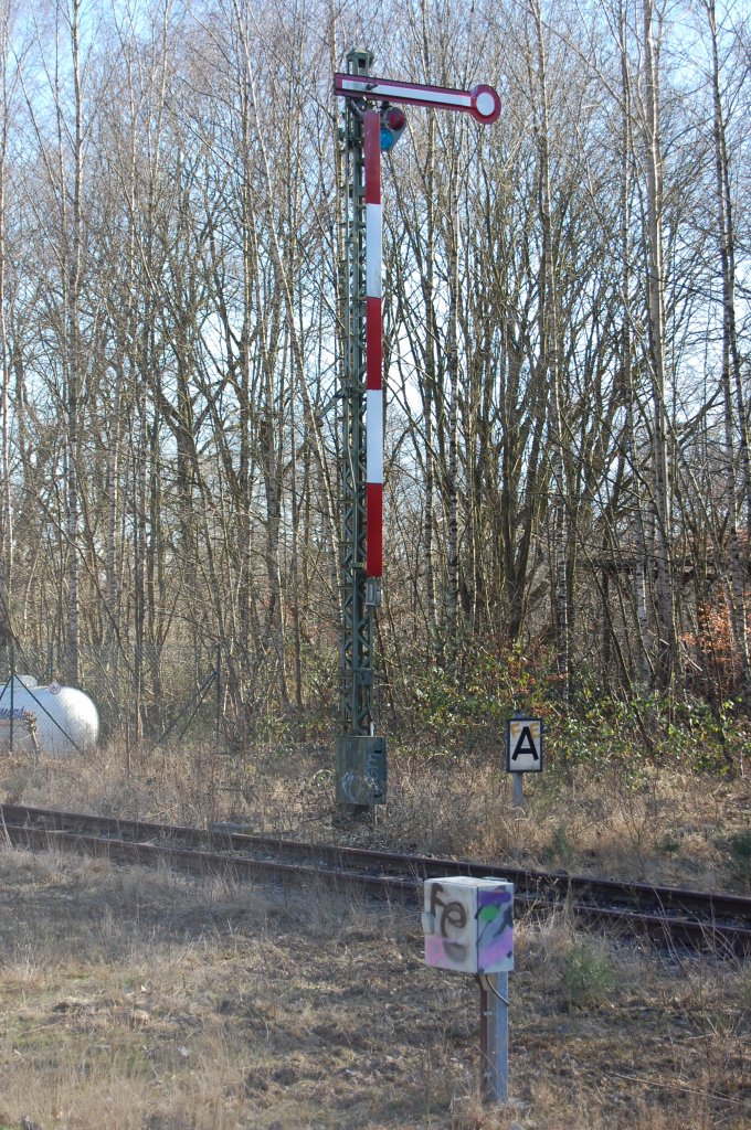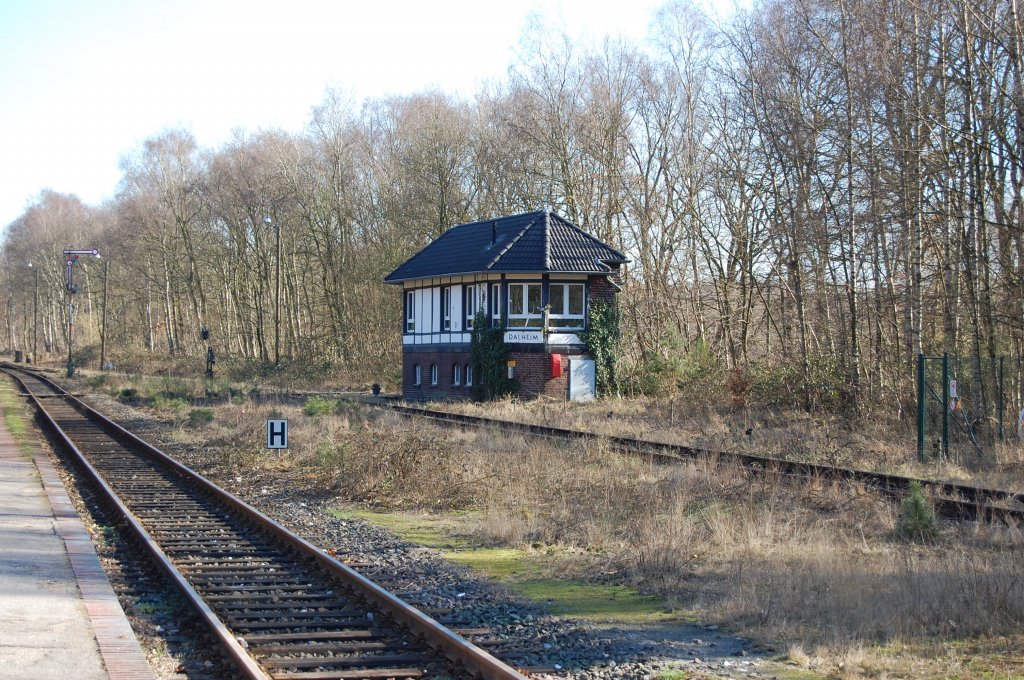 Foto vom 17.2.2008. Zwei Signale und eine Weiche! Dafür so ein großes Stellwerk? Einst war diese "Baumschule" der Grenzbahnhof Dalheim am eisernen Rhein, mit allem was so ein Grenzbahnhof mit abgehender Nebenbahn so braucht. Dieselloks der NS kamen hier Kohlezüge von der Zeche Sofia-Jakoba abholen, Bundeswehrzüge brachten Rekruten nach Buddel zur Ausbildung und und und......das ist nun der Rest. Andreas Strobel