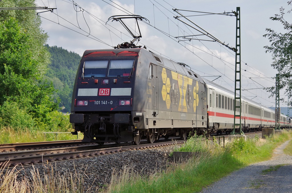 101 141 "Bahnazubis gegen Hass und Gewalt" schiebt am 06.07.2013 IC 2208 durch Johannisthal gen Kronach.