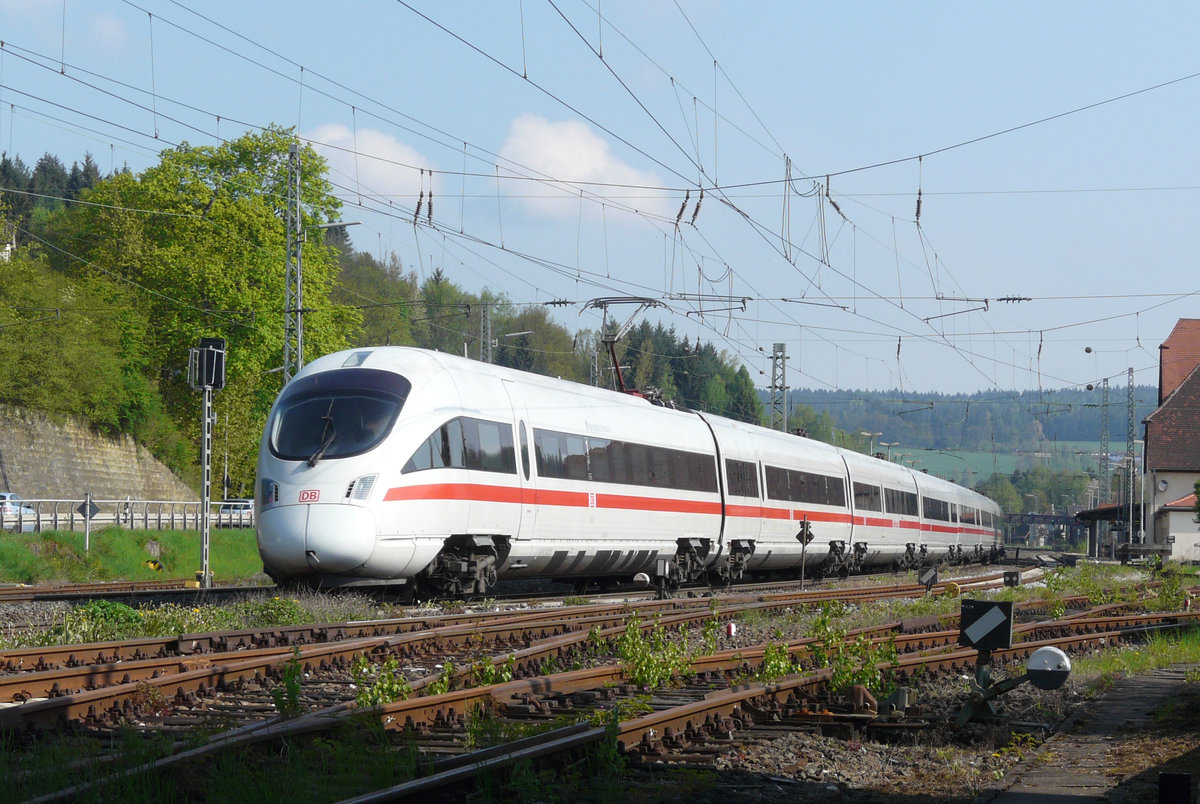06. Mai 2008, ICE "Hansestadt Stralsund" (Tz 1113) fährt am Stellwerk Süd des Bahnhofs Kronach als ICE 1512 über den Frankenwald und Berlin nach Hamburg-Altona. Jürgen Krause