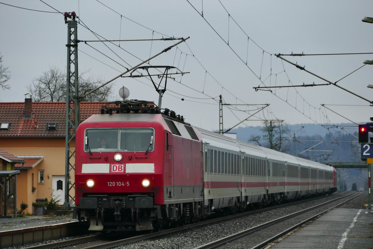 23. Februar 2017, IC 2300 München - Berlin - Rostock - Warnemünde fährt durch den Haltepunkt Gundelsdorf. Zuglok ist 120 104, 120 102 schiebt nach. Jürgen Krause