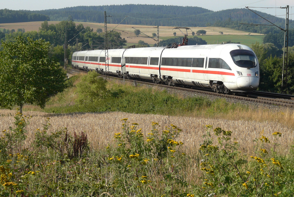 29. Juli 2008, in der Zettlitzer Kurve beginnt ICE "Plauen im Vogtland" (Tz 1118) als ICE 1612 München Hbf — Berlin Gesundbrunnen seine Fahrt über den Frankenwald Jürgen Krause