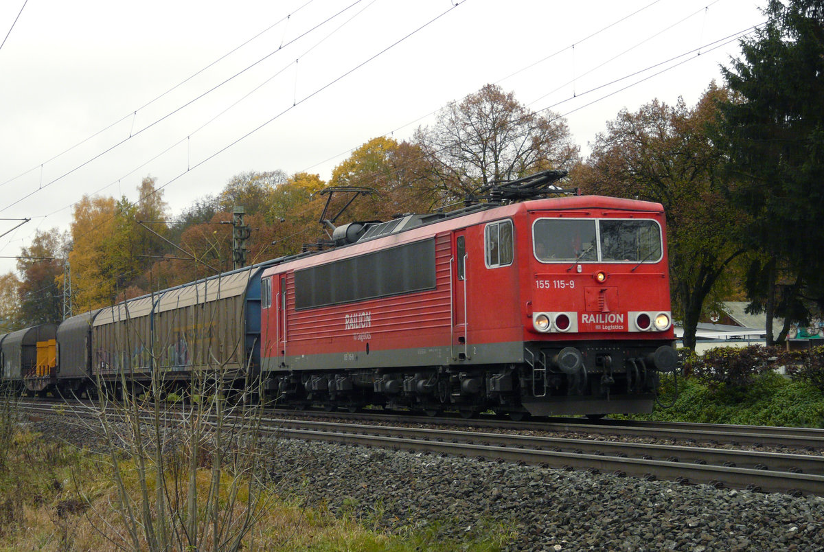 06. April 2010, Lok 155 116 fährt mit einem Güterzug aus Saalfeld in Richtung Lichtenfels. Fotografiert in der Nähe des Bahnüberganges Unterlangenstadt. Jürgen Krause