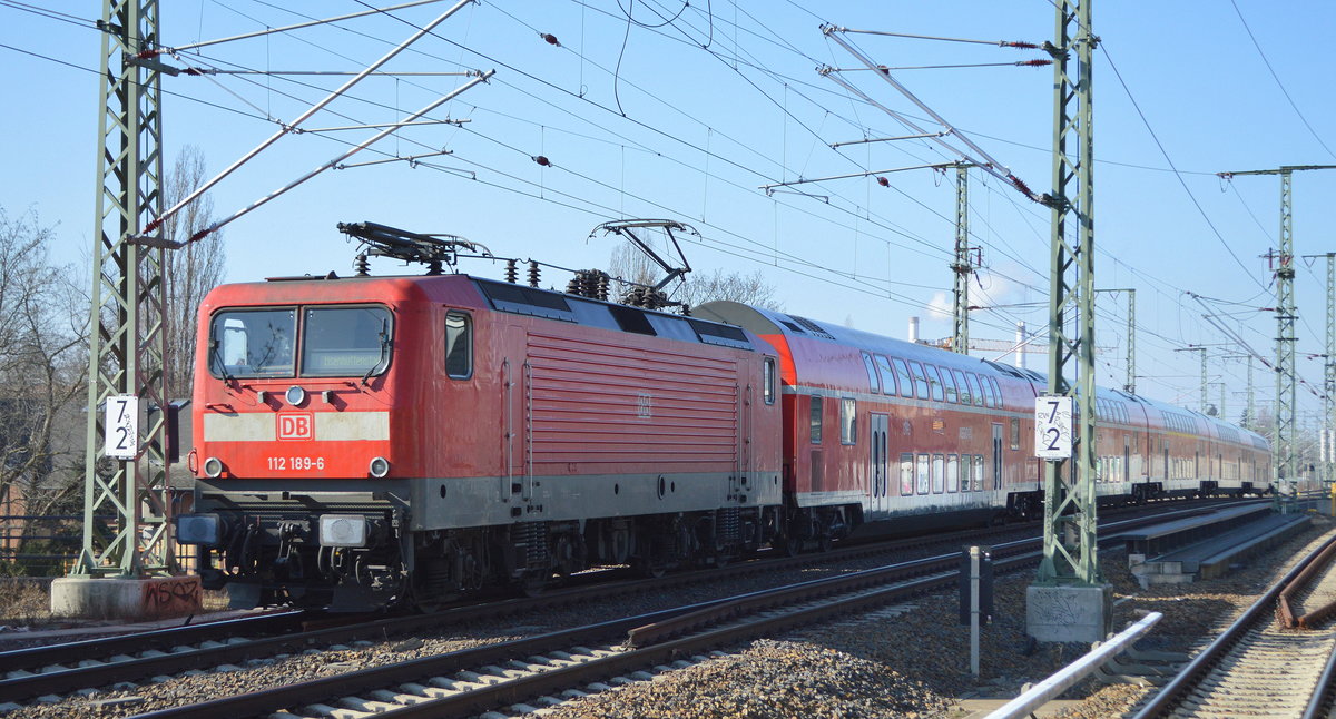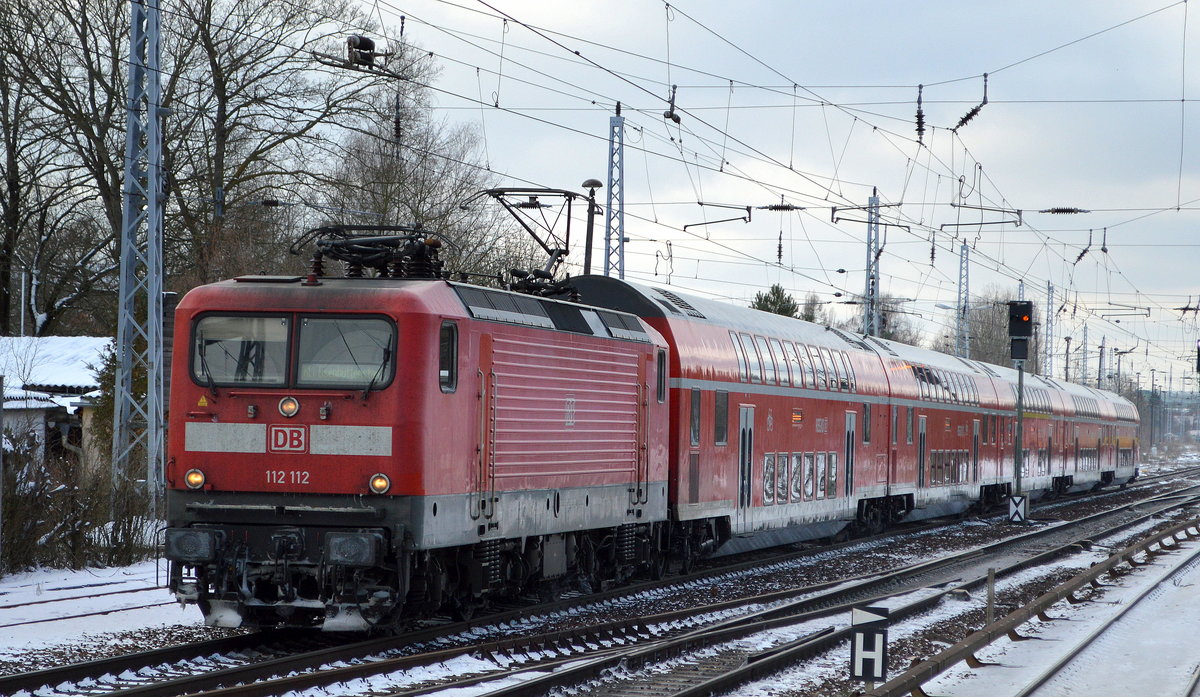 DB Regio Nordost mit dem RE1 nach Eisenhüttenstadt mit "112 112" (NVR-Nummer "91 80 6112 112-8 D-DB") am 11.02.21 Berlin Hirschgarten Richtung Erkner. Lothar Stöckmann