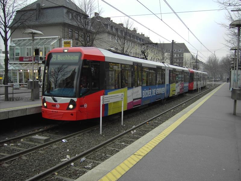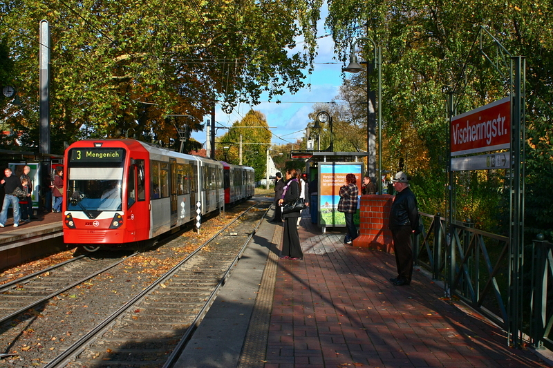 2 Wagen vom Typ K 5000 am 19. Juli 2009 von der Severinsbrücke kommend bei der Einfahrt in die Haltestelle "Suevenstraße". Die Haltestelle wird Suevenstraße und nicht Süvenstraße ausgesprochen! Johannes Schwarz