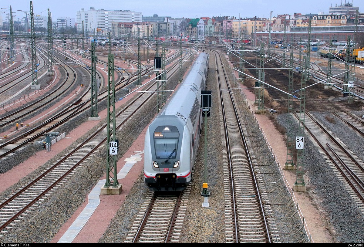 DBpbzfa 668.2 mit Schublok BR 146.5 DB als IC 2046 (Linie 55) von Dresden Hbf nach Köln Hbf passiert die Zugbildungsanlage Halle (Saale) in nördlicher Richtung. Aufgenommen von der Berliner Brücke. [24.2.2018 | 9:13 Uhr] Clemens Kral