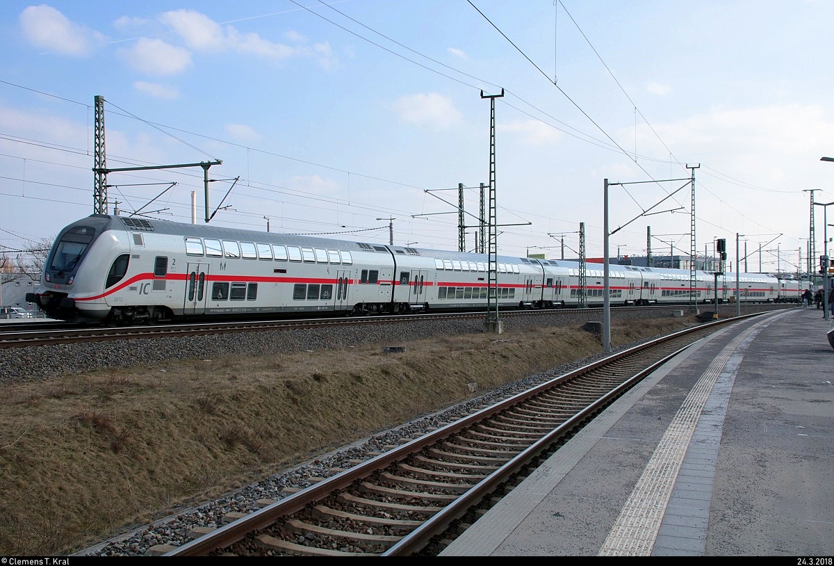 Nachschuss auf DBpbzfa 668.2 mit Zuglok 146 572-3 DB als verspäteter IC 2441 (Linie 55) von Köln Hbf nach Dresden Hbf, der am Hp Leipzig Nord auf der Neubaustrecke Erfurt–Leipzig/Halle (KBS 580) fährt. [24.3.2018 | 15:42 Uhr] Clemens Kral
