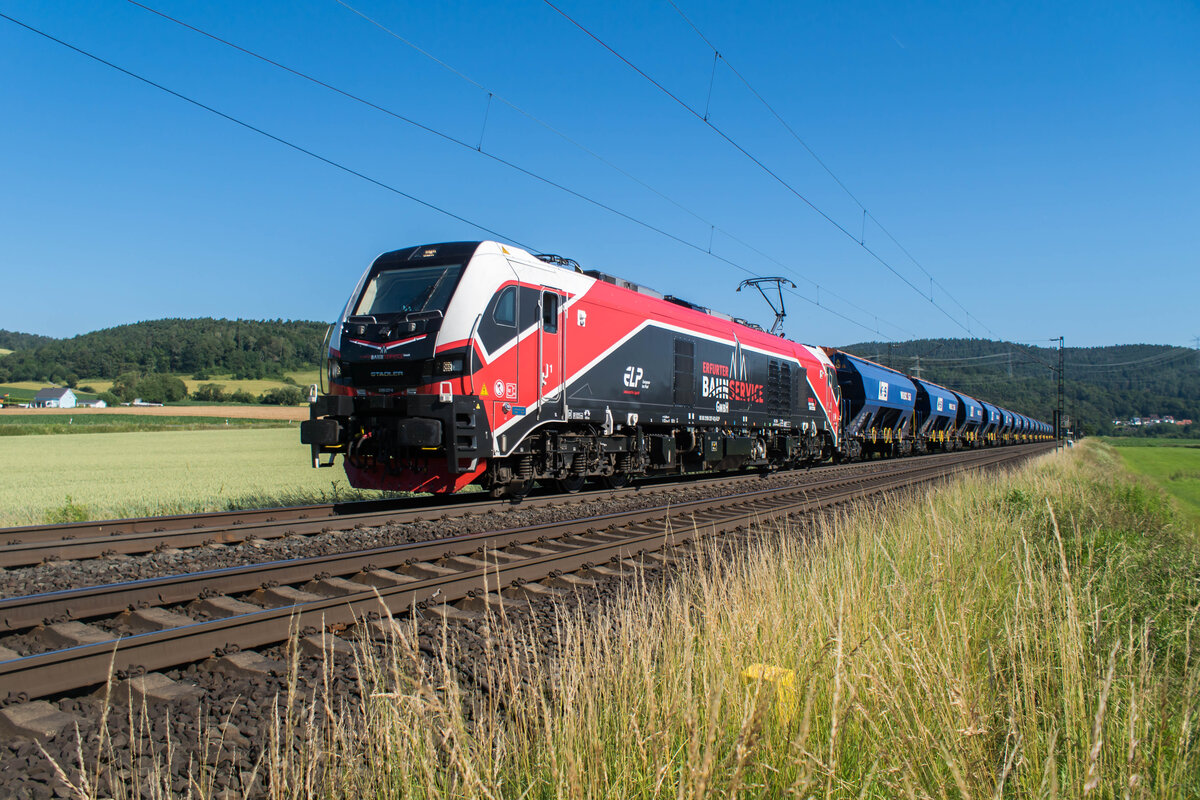 EBS - Erfurter Bahnservice GmbH, Erfurt [D] mit ihrer nagelneuen Eurodual Lok "2159 451-4" [NVR-Nummer: 90 80 2159 451-4 D-EBS] und einem Ganzzug Schüttgutwagen mit Schwenkdach (K+S) am 05.07.24 Höhe Bahnhof Berlin Karow.