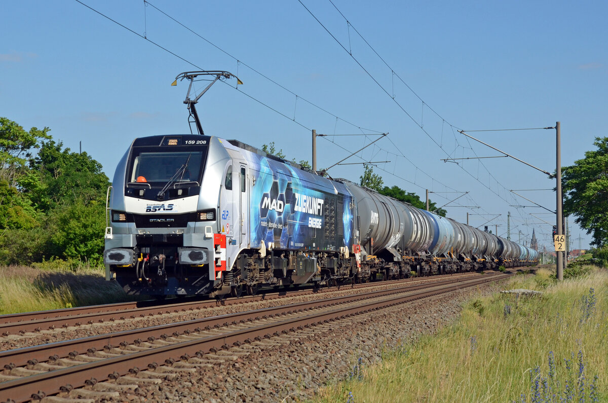 BSAS EisenbahnVerkehrs GmbH & Co. KG, Mülsen mit der Eurodual Lok "159 210" [NVR-Nummer: 90 80 2159 210-4 D-ELP] am 03.07.24 Höhe Bahnhof Ruhland. Lothar Stöckmann
