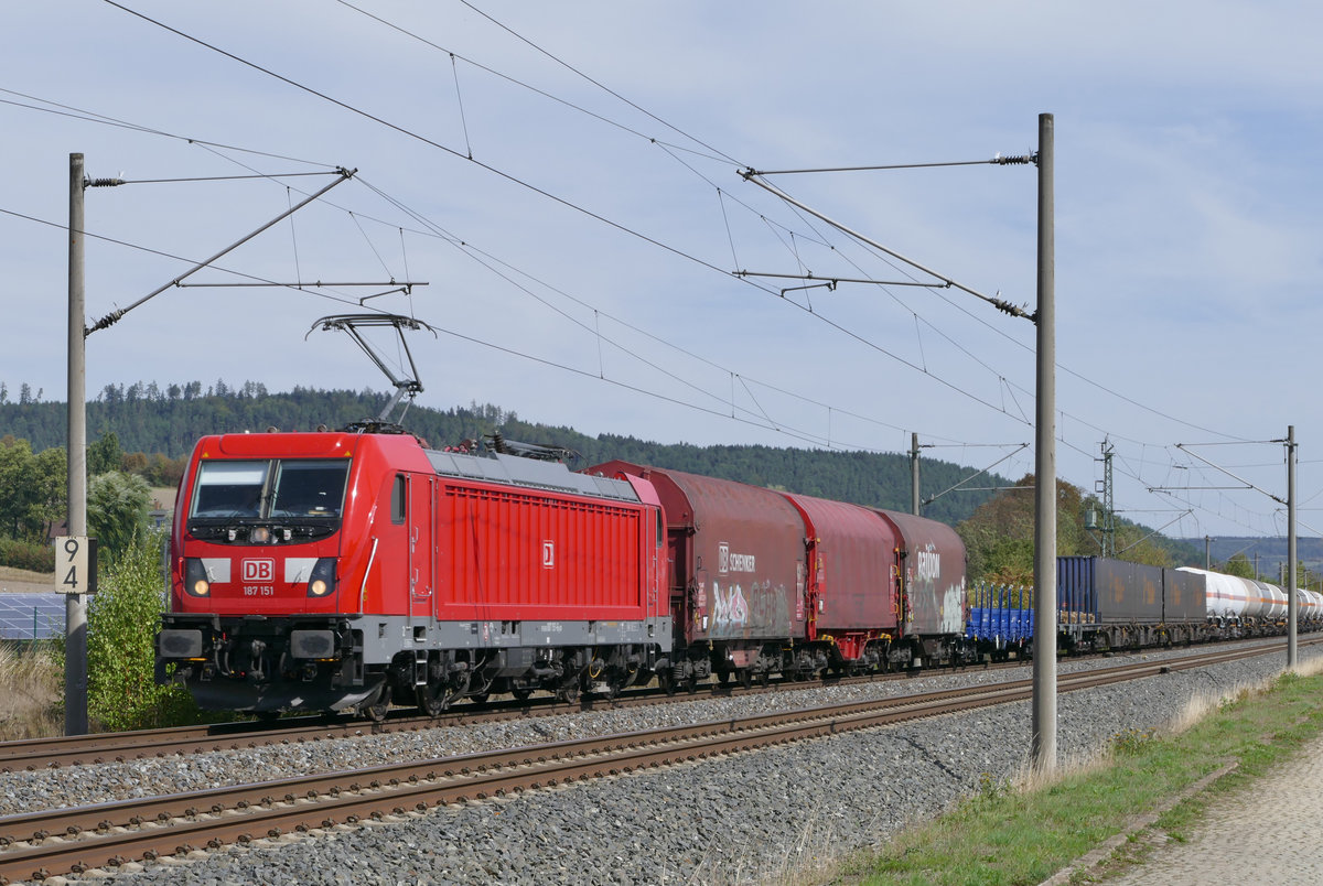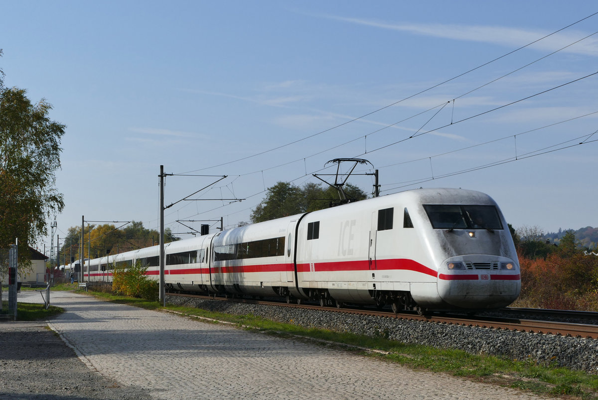 16. Oktober 2018, Ist das eine Werkstattfahrt oder wurde der planmäßige ICE 800 über seine alte Strecke, die Frankenwaldbahn, umgeleitet? - es handelt sich hier um ICE  Bad Oldeslohe  (Tz 159), der durch Küps in Richtung Saalfeld fährt.