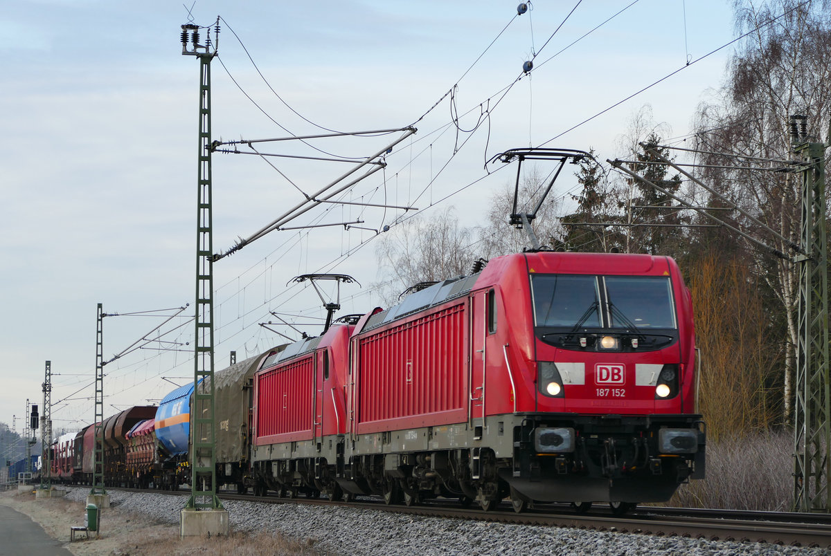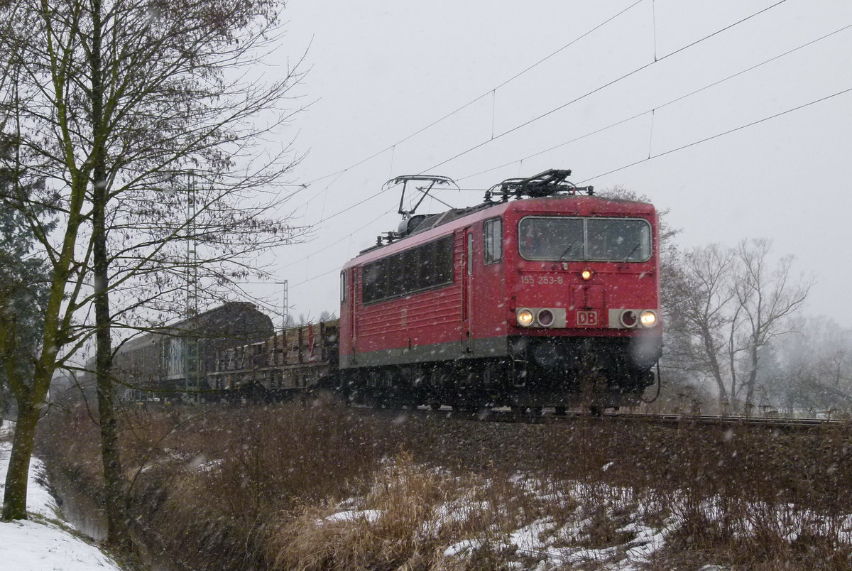 21. Februar 2013, Lok 155 202 hat 152 105 mit ihrem Güterzug Vorspanndienst über die Frankenwaldrampe geleistet. Von Pressig-Rothenkirchen fährt sie jetzt solo nach Probstzella zurück.