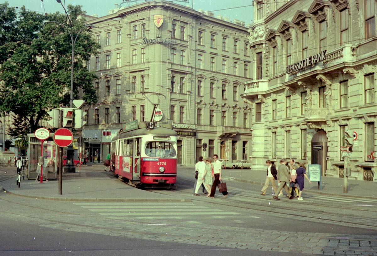 Wien Wiener Verkehrsbetriebe SL 45 (M 4022 (Grazer Waggonfabrik 1927) + m3 5401 (Grazer Waggonfabrik 1929) + m) Kärntner Ring / Schwarzenbergplatz im Juli 1975. - Scan von einem Farbnegativ. Film: Kodacolor II. Kamera: Kodak Retina Automatic II. Kurt Rasmussen