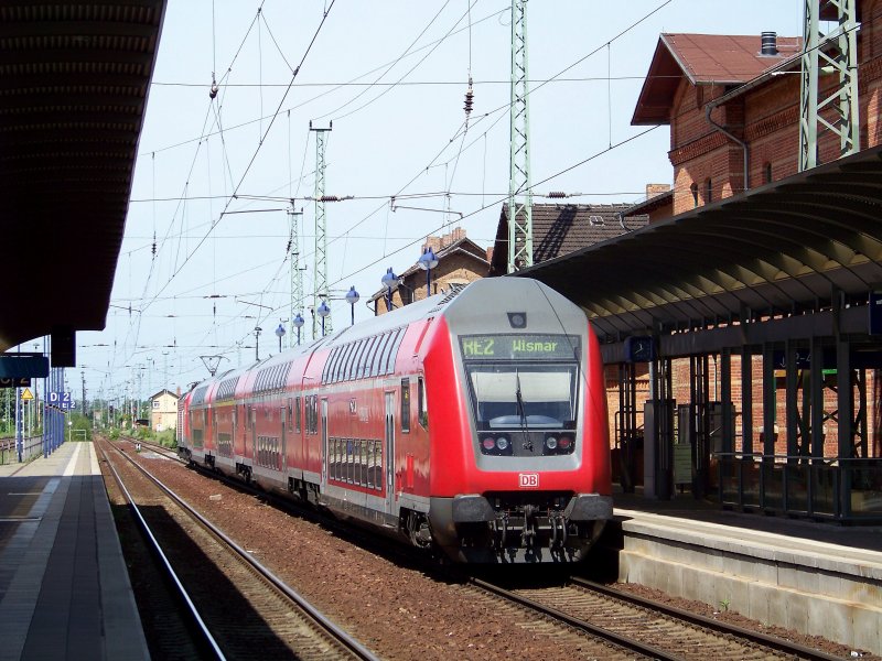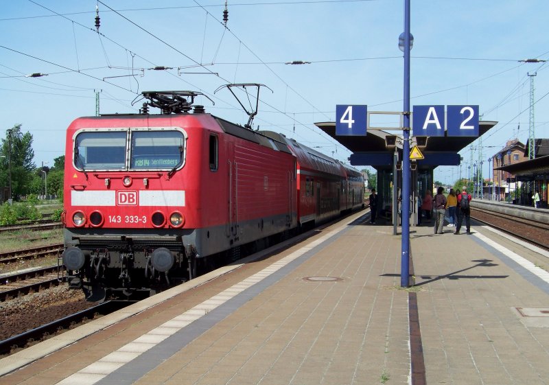 Hier zu sehen ein Rückschuss auf den RE2 (Cottbus -Berlin - Wismar), welche sich momentan stehend im Bahnhof von Lübbenau/Spreewald befindet. 09.05.2009 Hannes Müller