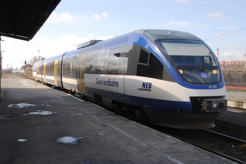 REHFELDE (Landkreis Märkisch-Oderland), 25.03.2009, VT 738 der NEB als hinterer Teil einer Doppeltraktion als NE26 nach Kostrzyn/POLEN bei der Ausfahrt aus dem Bahnhof Rehfelde Reinhard Zabel