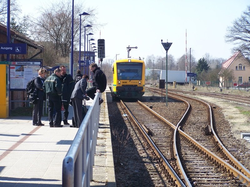VIERLINDEN (Landkreis Märkisch-Oderland), 25.03.2009, ein Zug der NEB als NE26 nach Kostrzyn/POLEN bei der Ausfahrt aus dem Bahnhof Alt Rosenthal Reinhard Zabel