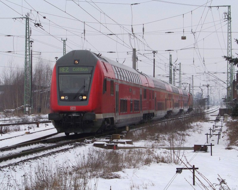 Hier zu sehen der RE2 nach Cottbus mit Steuerwagen vorraus bei der Einfahrt in den Lübbenauer Bahnhof. Lübbenau/Spreewald den 25.03.2009 Hannes Müller