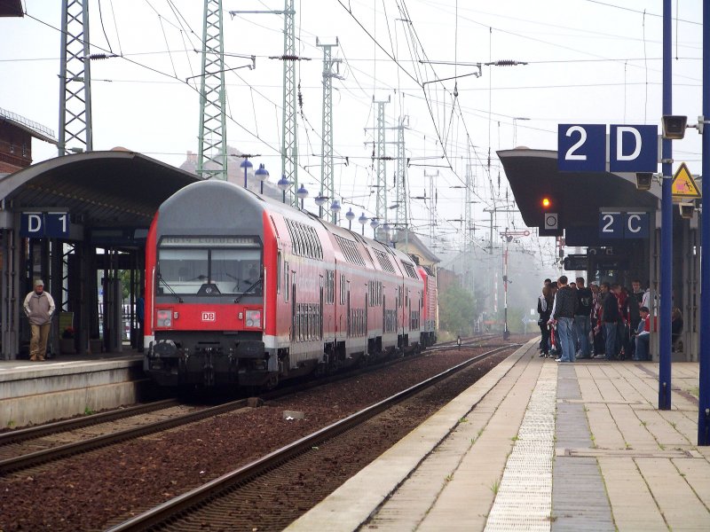 RE2 (RE 38142) von Cottbus nach Rathenow durchfährt am 13.09.2008 den Bahnhof von Berlin Karlshorst. Nächster Halt des Zuges ist Berlin Ostbahnhof. Hannes Müller