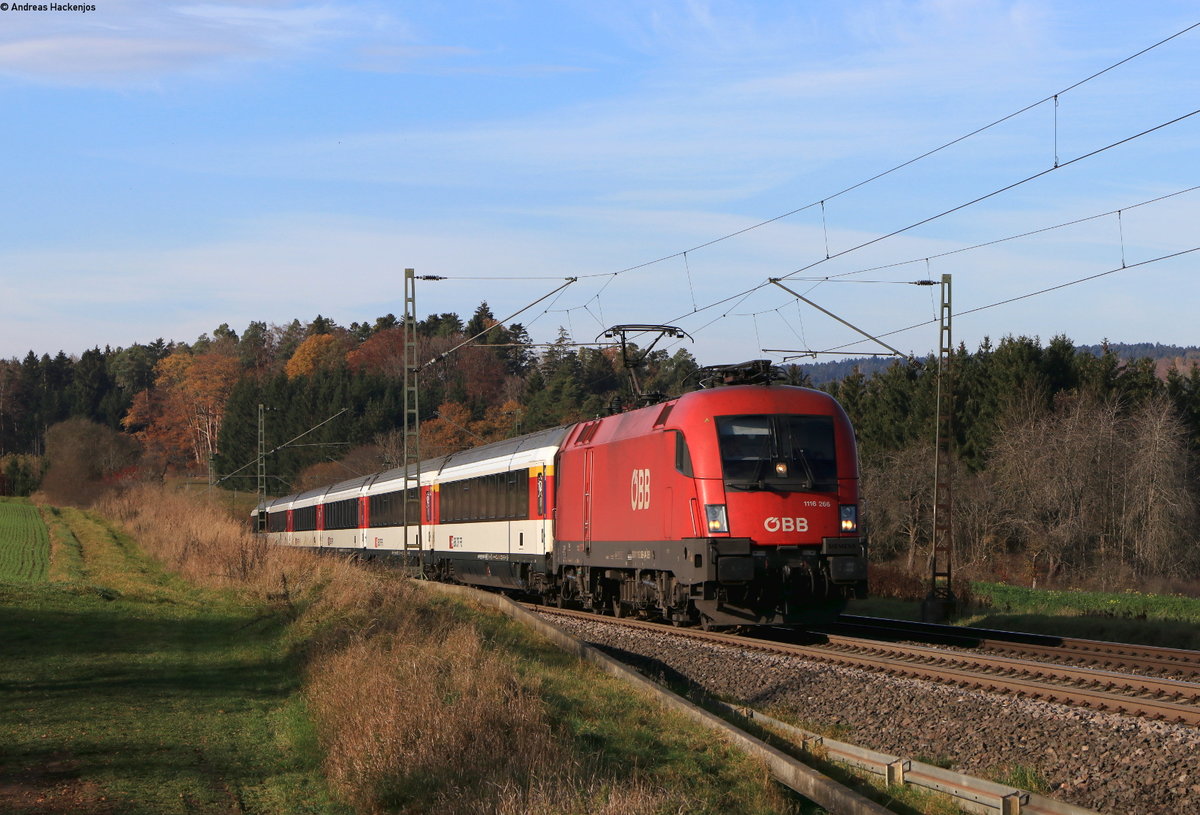 1116 159 "150 Jahre Brennereisenbahn" mit IC Stuttgart-Zürich bei Stuttgart-Dachswald am 25.11.2020.