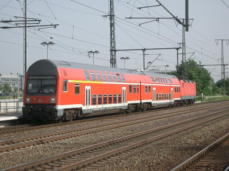 112 113-6 schiebt seinen RE1 (RE 38018) nach Magdeburg Buckau. Als Ziel steht zwar Madgeburg Hbf, aber da wird ja gebaut. Datum: 01.07.2008 Hannes Müller