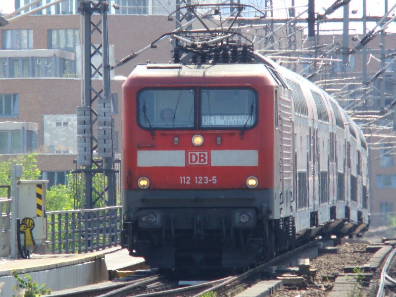 BR 112 113-6 + 5 Dosto Wagen. Das kann und ist nur der RE1 sein. Wegen Bauarbeiten endet der Zug am Berliner Ostbahnhof statt Frankfurt an der Oder. Aufgenommen am 07.06.2008, Berlin Alexanderplatz. Marcel W.