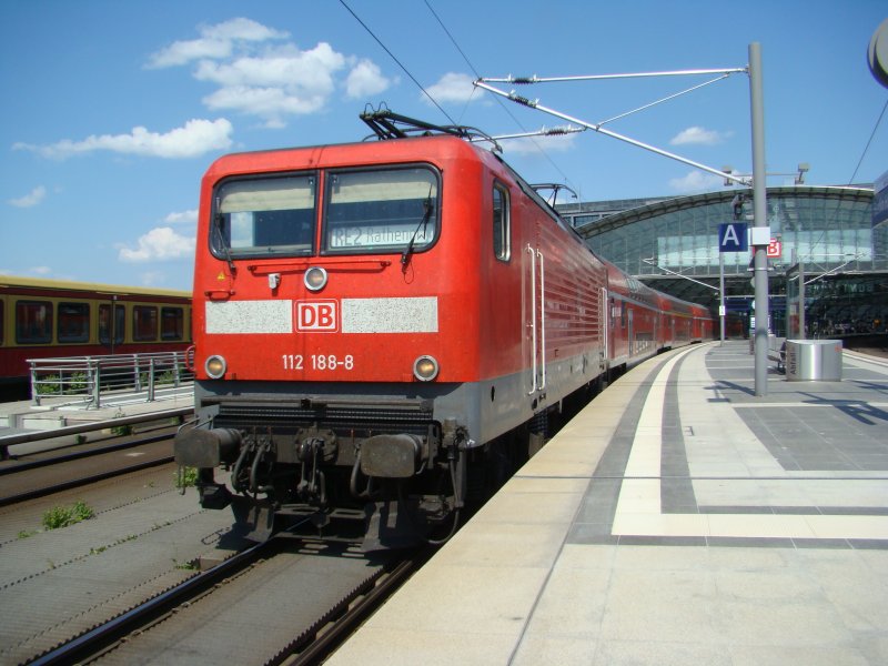 Auf Gleis 11 fährt jetzt ein der RE1 (RE 38013) aus Magdeburg Buckau. Dieser Zug fährt dann weiter nach Eisenhüttenstadt. Als Lok dient 112 115-1. Frankfurt/Oder den 01.07.2008 Hannes Müller