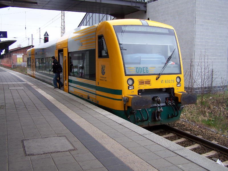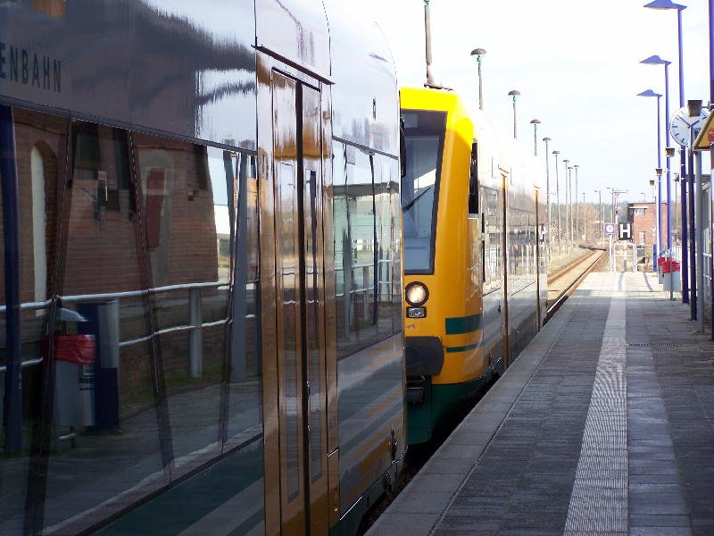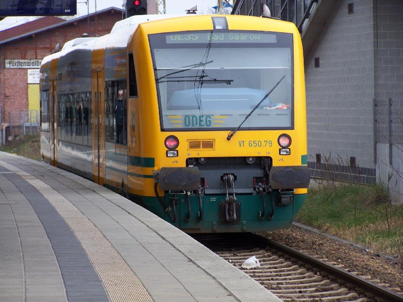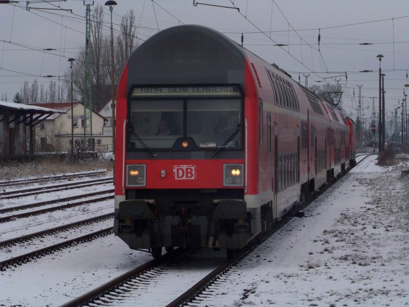RB14 aus Nauen fährt jetzt in den Bahnhof Lübbenau/Spreewald ein. Aufgrund von Bauarbeiten endet dieser Zug in Lübbenau und fährt nicht weiter nach Senftenberg. Datum: 20.03.2008 Hannes Müller
