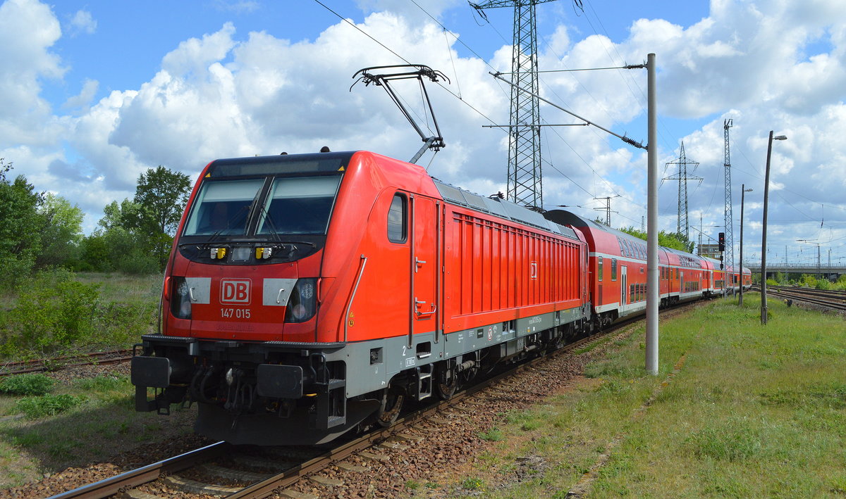 Inzwischen schon ein gewohntes Bild die DB Regio AG [D] mit "147 015" [NVR-Nummer: 91 80 6147 015-2 D-DB] als RB14 nach Nauen bei der Ausfahrt BF. Flughafen Berlin Schönefeld, 12.05.20 Lothar Stöckmann