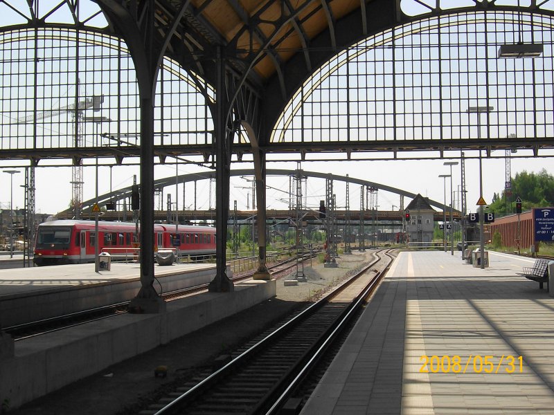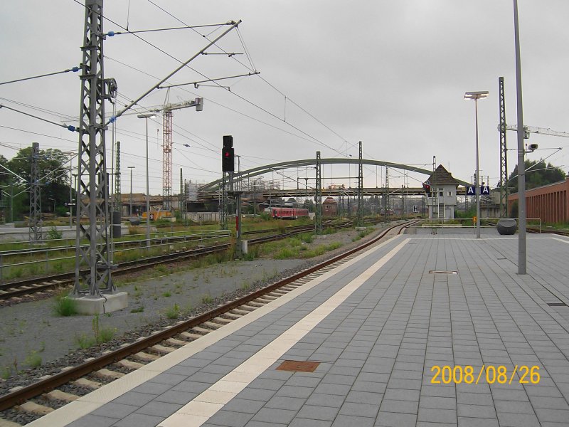 Lübeck Hbf am 26.08.08. Zusehen ist die neue Oberleitung, die neuen Bahnsteige, runderneuerte Gleise und die sich noch im Bau befindliche Meierbrücke. In fünf Wochen starten hier die ersten Testfahrten mit E-Loks. Lars Backhaus
