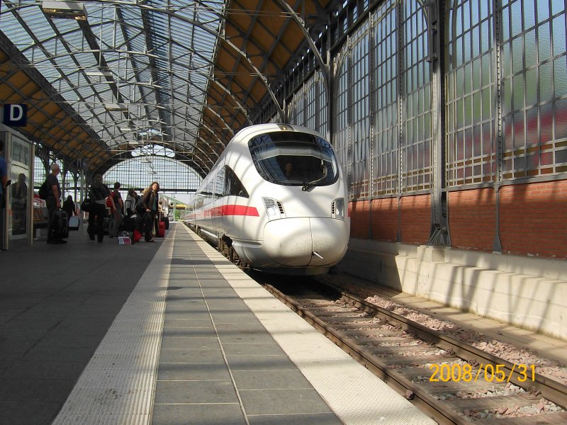 218 487-7 steht an einem verregnetem Herbsttag mit IC 2121 von Puttgarden nach Frankfurt am Main Hbf im Lübecker Hbf und wartet auf die Abfahrt. Weiß jemand, ob diese Zugleistung ab Ende 2008 von einer 101er oder 120er übernommen wird? Lars Backhaus