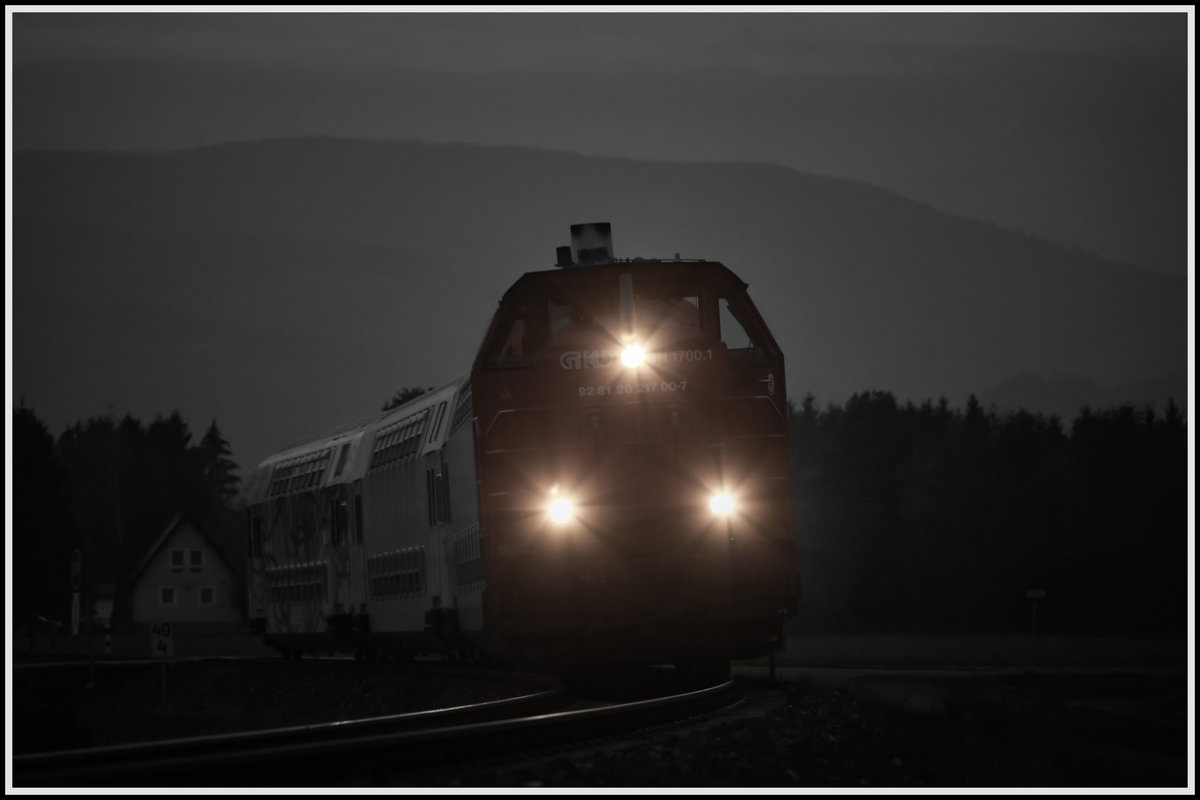 Spät in der Nacht des 28.7.2020 am Bahnhof in Knittelfeld.
