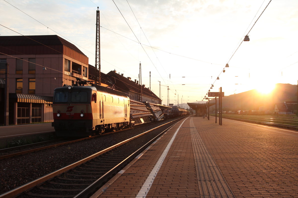 Nur wenige Minuten nach der Ankunft des mit der 1144 117 bespannten DG54571 von Graz Vbf nach Villach Süd Gvbf in Knittelfeld am 15.7.2020 blinzelte die Morgensonne hinter dem Gobernitzberg hervor und sorgte für herrliche Morgenstimmung.