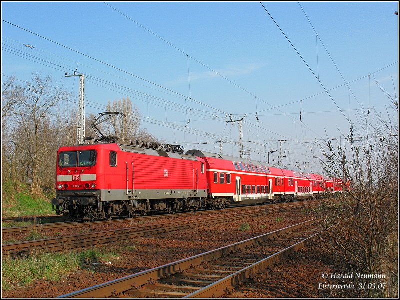 114 039 (ex 112 039) wartet am 30.03.2007 mit dem RE 38444 von Wünsdorf-Waldstadt nach Schwedt(Oder) im Hauptbahnhof Berlin auf die Weiterfahrt. Florian Böttcher