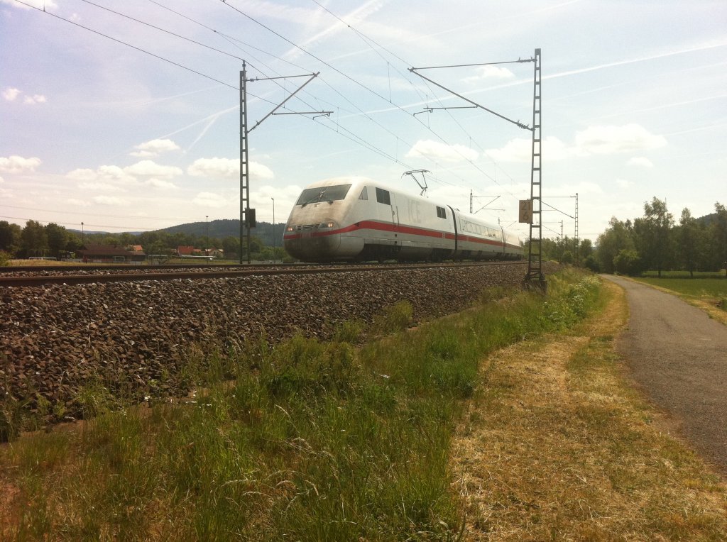 Und wieder war ein ICE 3 auf der Frankenwaldbahn unterwegs... . Hier wurde er am 25. Mai 2011 auf seiner Fahrt von Berlin nach München bei Redwitz erlegt. Vielen Dank an die vielen Vormelder, die sich an diesem Tag an der Strecke "herumtrieben". Frankenwaldbahner