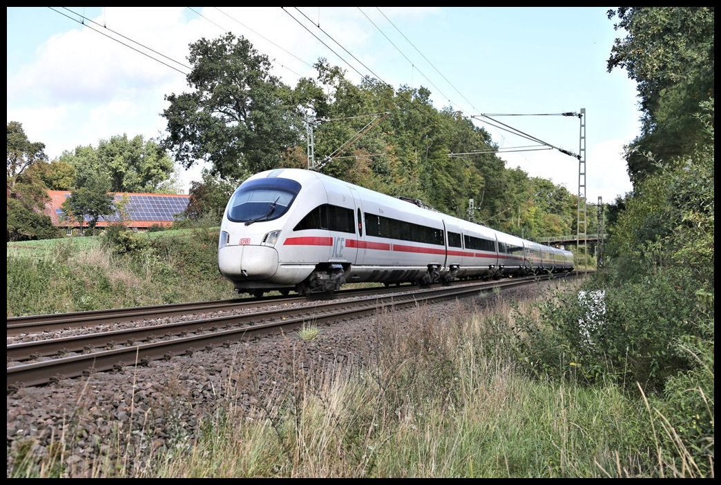 Immer mehr IC Züge auf der Rollbahn zwischen Bremen und Münster werden inzwischen mit ICE Garnituren gefahren. Am 2.10.2022 war dieser ICT um 13.37 Uhr am Ortsrand von Hasbergen in Richtung Münster unterwegs. Gerd Hahn