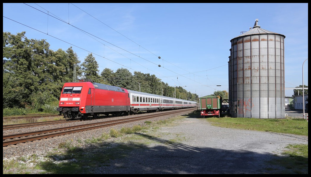 Immer mehr IC Züge auf der Rollbahn zwischen Bremen und Münster werden inzwischen mit ICE Garnituren gefahren. Am 3.10.2022 war DB 101099 mit einem IC nach Münster unterwegs und durchfährt hier um 12.55 Uhr den Bahnhof Kattenvenne. Gerd Hahn