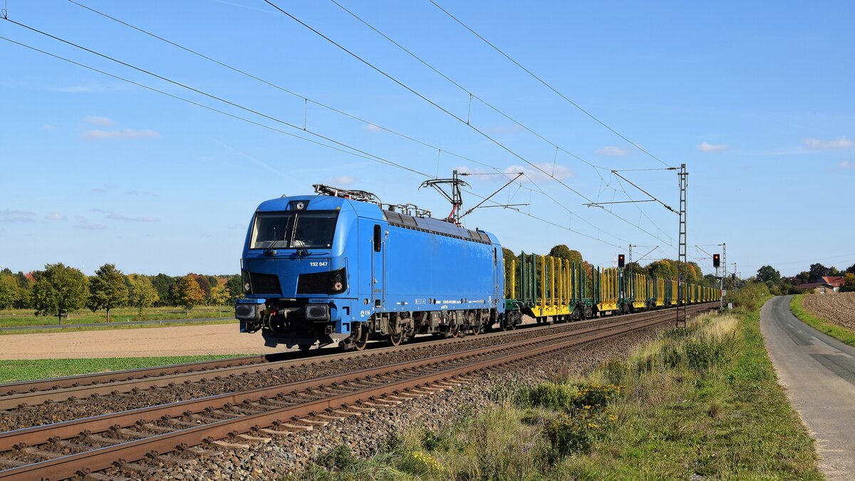 Eine bunt zusammen gestellte Party Zug Garnitur hatte 185529-5 am Haken, als der Zug am 2.10.2022 um 14.52 Uhr hier am Ortsrand von Hasbergen in Richtung Münster unterwegs war. Gerd Hahn