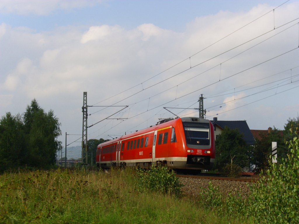 Eine Regionalbahn von Neumarkt (Oberpfalz) nach Kronach über Nürnberg und Lichtenfels ist am 5. Juli 2010 zwischen Neuses und Kronach unterwegs. Frankenwaldbahner