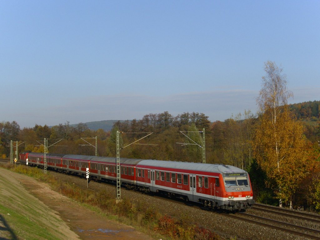 Eine Regionalbahn von Kronach nach Lichtenfels ist am 31. Oktober 2010 auf der Frankenwaldbahn zwischen Kronach und Neuses unterwegs. Frankenwaldbahner