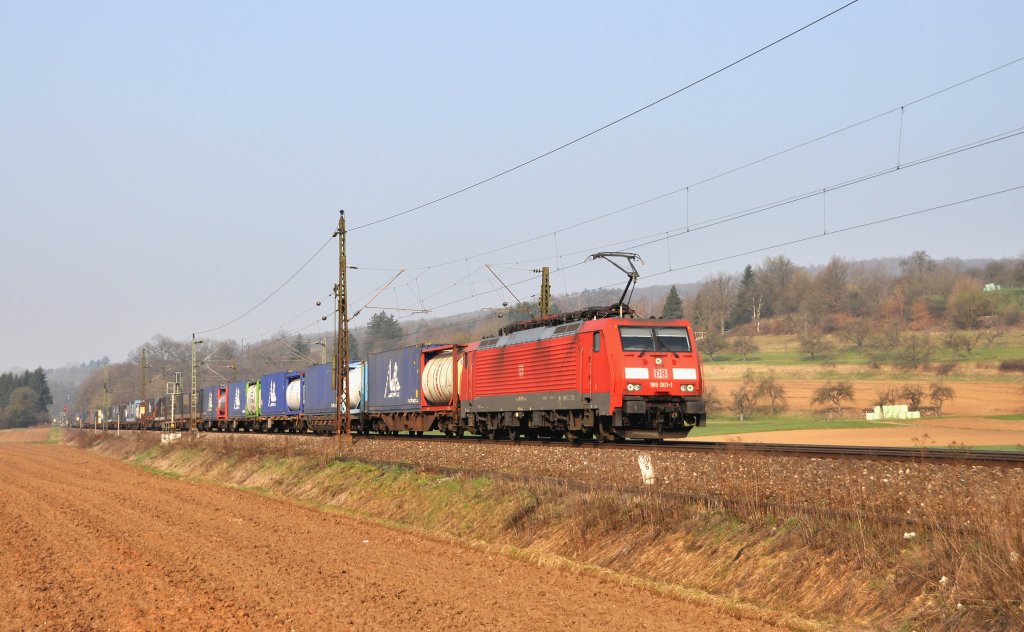 Momentaufnahme am 18.03.2012 in Aachen West. Auf der Plane des Aufliegers der mit dem KLV nach Belgien gezogen wird, hat sich in der Nacht Regen gesammelt. Bei der Ausfahrt aus Aachen West wird das Wasser in der ersten Kurve von den Aufliegern geschleudert und sorgt für spektakuläre Wasserspiele. Mario Schürholz