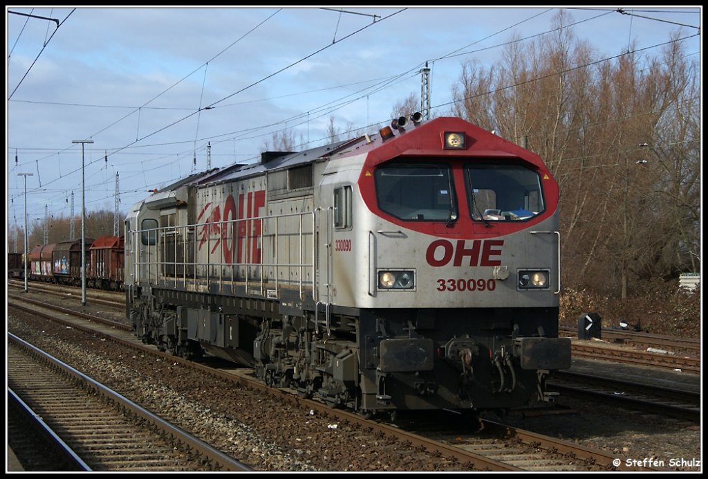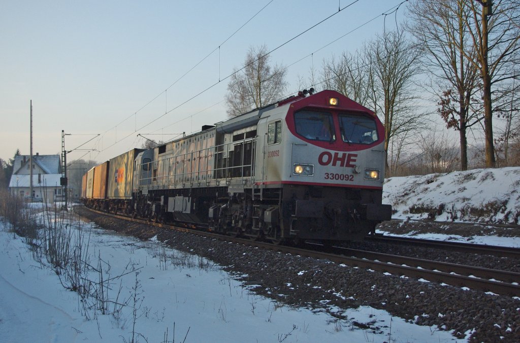 Leider nicht im besten Licht präsentiert sich 330092 der OHE am Morgen des 17.02.2010 am Bü in Eltmannshausen /Eschwege West in Fahrtrichtung Norden Jens Baumhauer