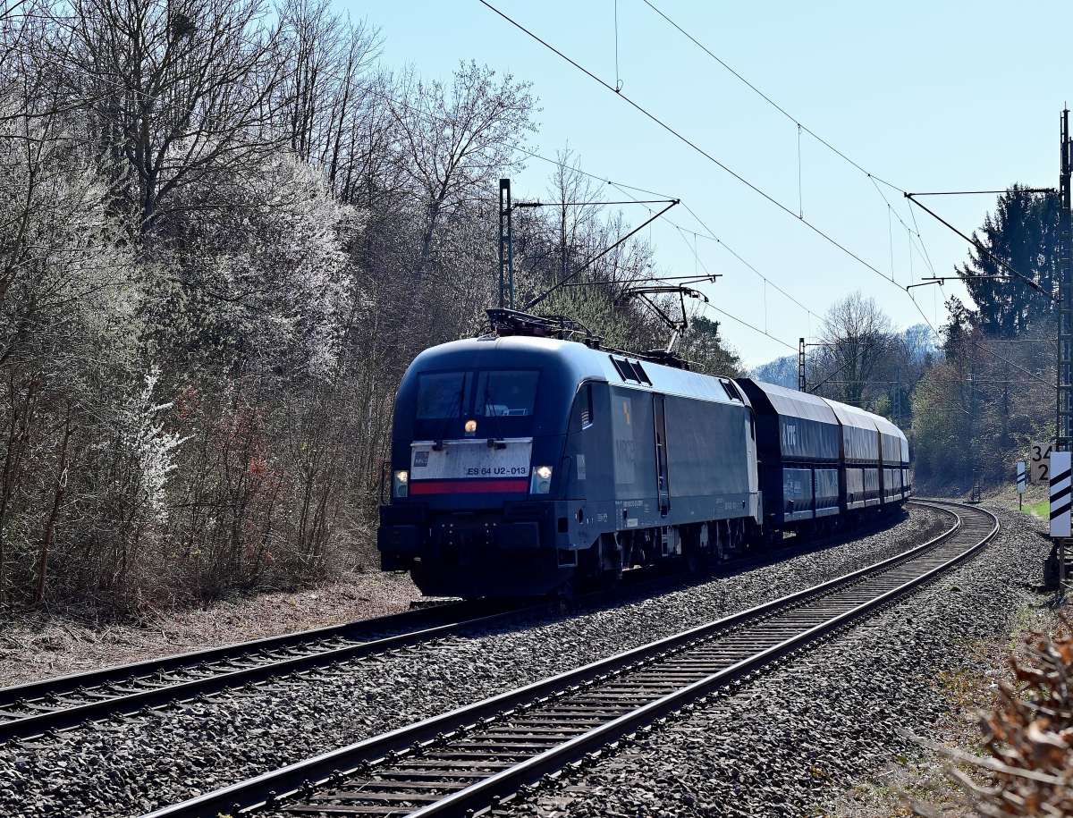 10 Minuten später und womöglich wegen des wendenden 643 102-6 auf dem Nachbargleis (mir nicht bekannt, ob das dort normal ist) kommt die "Mauerfall-Lok" 182 560-3 (Siemens ES64U2-060) aus dem Bahnhof Altenbeken gefahren.