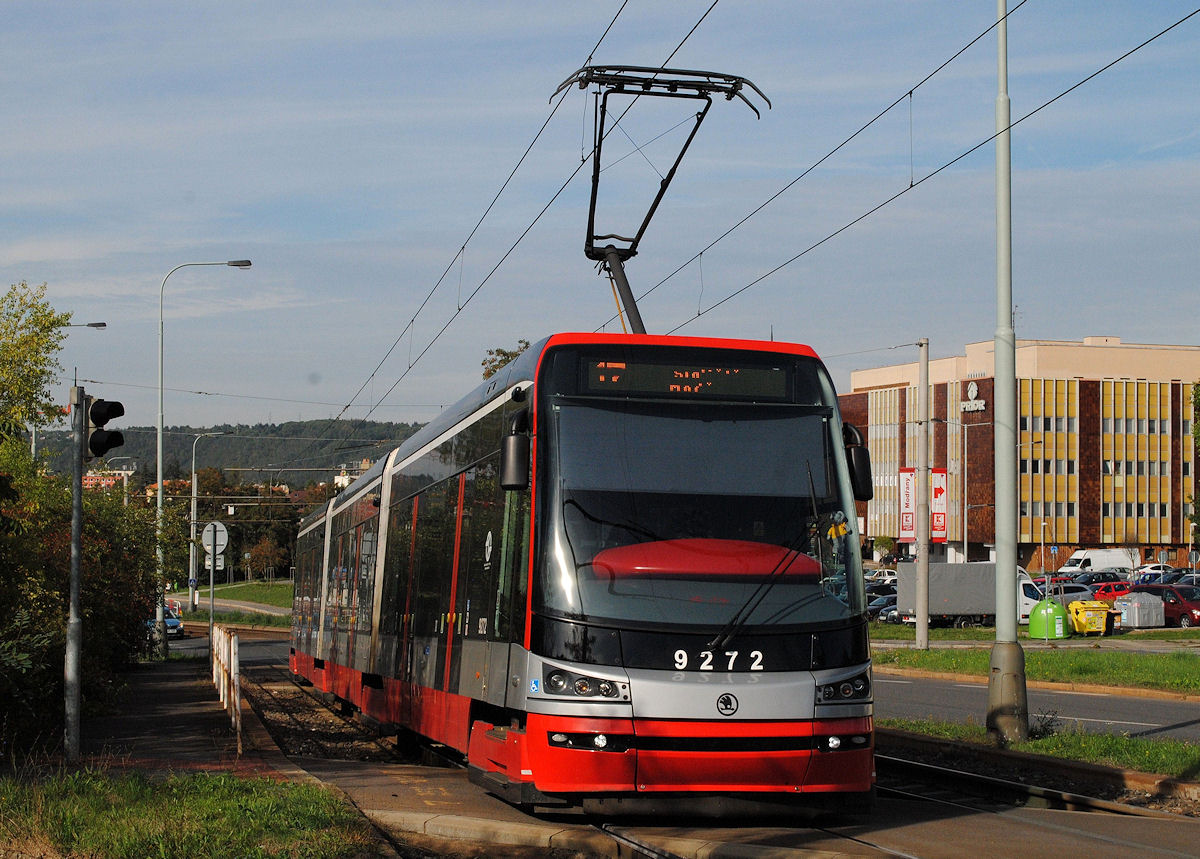 Tw. 9272 hat soeben die Haltestelle Poliklinika Modrany verlassen und fährt jetzt entlang der Ulica Generala Siska ins Siedlungsgebiet Modrany. (16.09.2015 ) Erwin Schidlofski