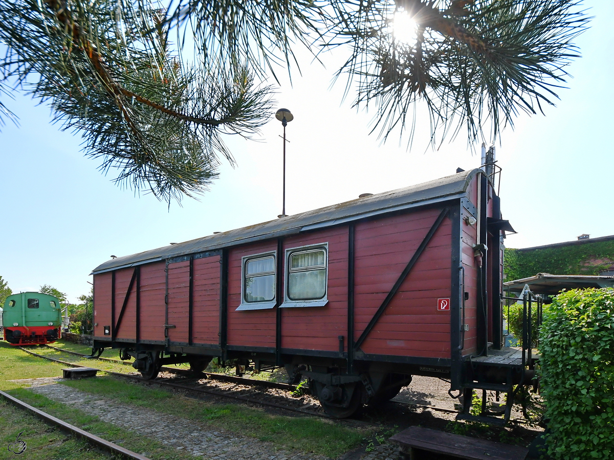 Dies ist der bei Linke-Hofmann in Breslau gebaute Herrengefolgewagen Nr. 5A des Kaisers Wilhelm II. Er diente später in der DDR als Messwagen des Lokomotiv-Versuchamtes Grunewald, später in Halle (Saale) und letztendlich der VES-M Halle als Ferienheim auf Usedom. (Lokschuppen Pomerania, Pasewalk, Juni 2020) Christian Bremer
