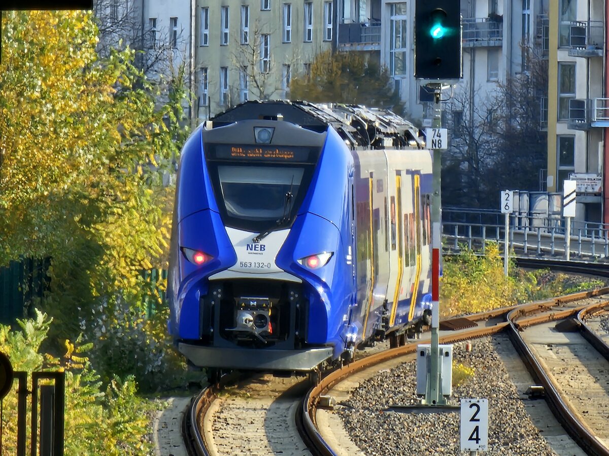 Mireo 563 034 der NEB Betriebsgesellschaft (NEB) hält als RB36 (61352) in Kablow auf der Fahrt nach Königs Wusterhausen.