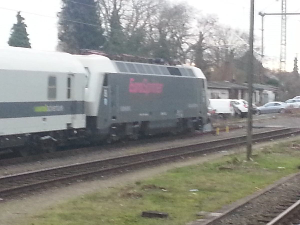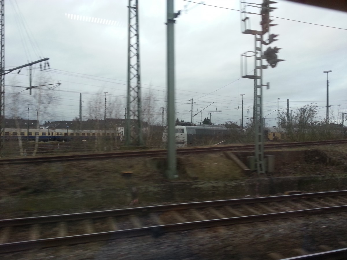 111 016 verlässt Mönchengladbach Hbf in Richtung Rheydt, hier ist sie auf dem Damm an der Jenaer Straße zu sehen am Mittwoch den 27.1.2016 Andreas Strobel