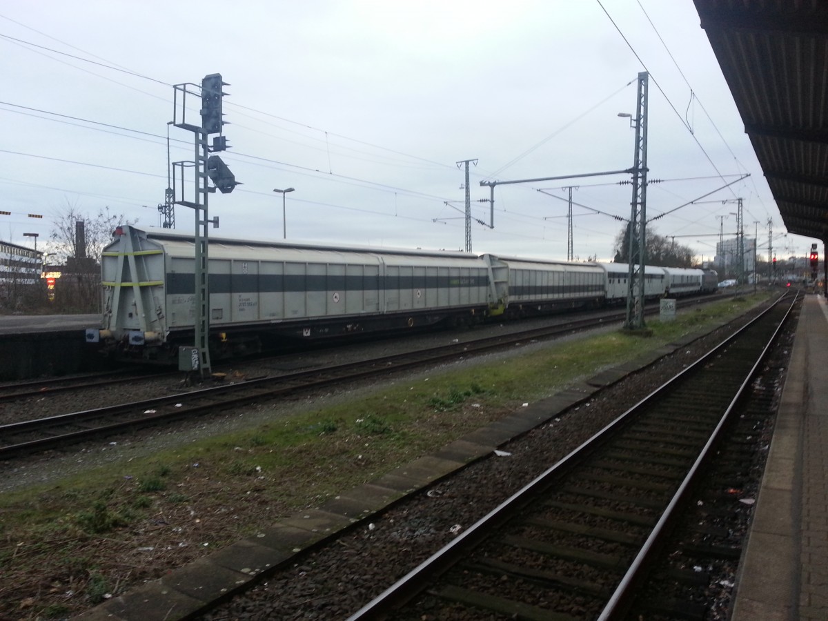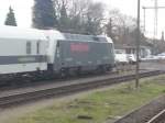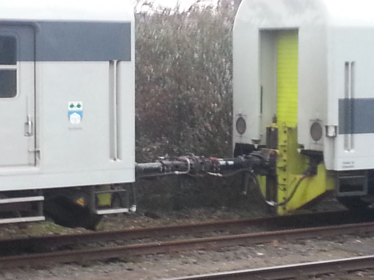PCW Nr.6 kommt am Montagmittag mit einem Teilzug der britischen Firma Thameslink hinter dem Schutzwagen durch den Mönchengladbacher Hbf gefahren.