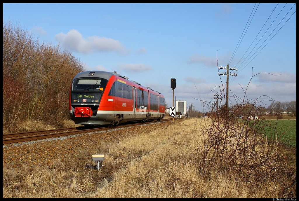 Zwei Desiro der DB Regio passieren am 22.04.2011 das Einfahrsignal des Bahnhofs Großsteinberg. Ziel des von 642 140/640 geführten Zuges ist Meißen. Christopher Pätz