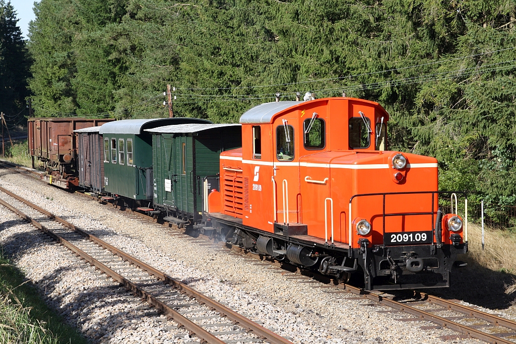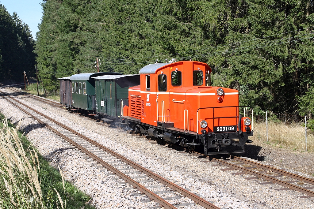 WSV 2091.09 am 09.September 2023 anlässlich des vom WSV veranstalteten 2 tägigen "Güterzugfestival im Wald4tel" im Bahnhof Alt Nagelberg. Karl Seltenhammer