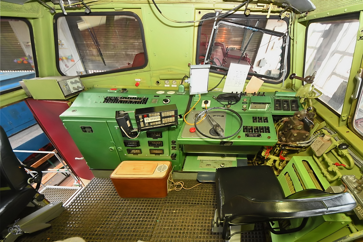 Blick in den Führerstand der 1940 bei Kraus-Maffai gebauten Dampflokomotive 03 0090-5. (Mecklenburgisches Eisenbahn- und Technikmuseum Schwerin, März 2022) Christian Bremer