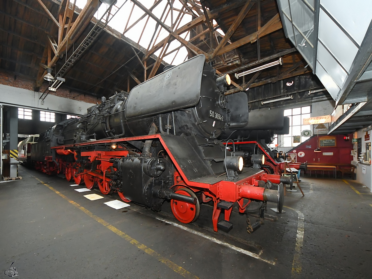 Die Güterzugdampflokomotive 50 3694-2 erblickte 1940 als 50 405 das Licht der Welt und wurde 1961 im Rahmen einer Rekonstruktion modernisiert. (Mecklenburgisches Eisenbahn- und Technikmuseum Schwerin, März 2022) Christian Bremer