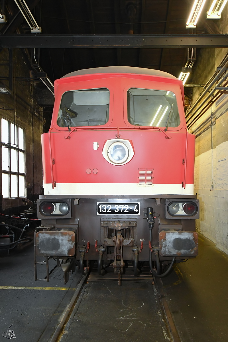 Im Mecklenburgischen Eisenbahn- und Technikmuseum Schwerin war Ende März 2022 die 1976 gebaute Diesellokomotive 132 372-4 ausgestellt. Christian Bremer
